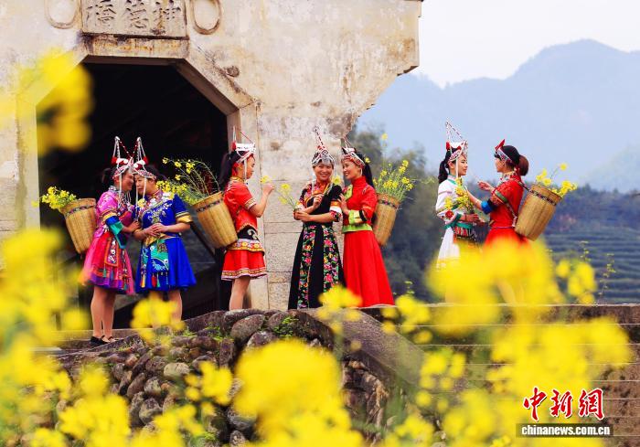 畬族婚嫁習(xí)俗以隆重、熱鬧和獨(dú)特的儀式感著稱。眼下,由竹垟畬族鄉(xiāng)畬族姑娘組建的“畬小妹”風(fēng)情演繹團(tuán)以真實(shí)婚俗為藍(lán)本,從“說親”“定親”到“迎親”“拜堂”,完整還原了畬族婚禮的全過程,讓游客親身感受畬族文化的浪漫與熱情。這場集觀賞性、互動(dòng)性與文化體驗(yàn)于一體的表演,逐漸成為當(dāng)?shù)匚穆卯a(chǎn)業(yè)的“金名片”。