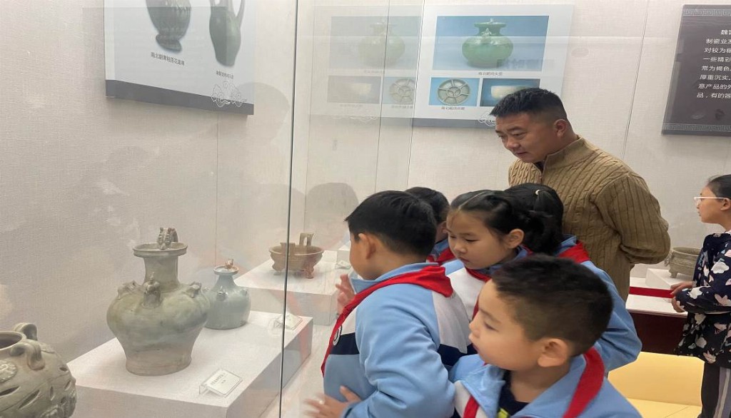 當隊員們踏入陶瓷文化展廳,宛如置身于一個精美絕倫的陶瓷藝術(shù)殿堂。隊員們從大汶口彩陶的紋樣中讀懂遠古審美,在現(xiàn)代藝術(shù)瓷的釉色間感受匠人精神,聽著講解員講述萊蕪陶瓷的發(fā)展歷程和制作工藝,他們眼中閃爍著對傳統(tǒng)文化的驚嘆與熱愛,稚嫩的心靈深深印刻下家鄉(xiāng)陶瓷文化的印記。