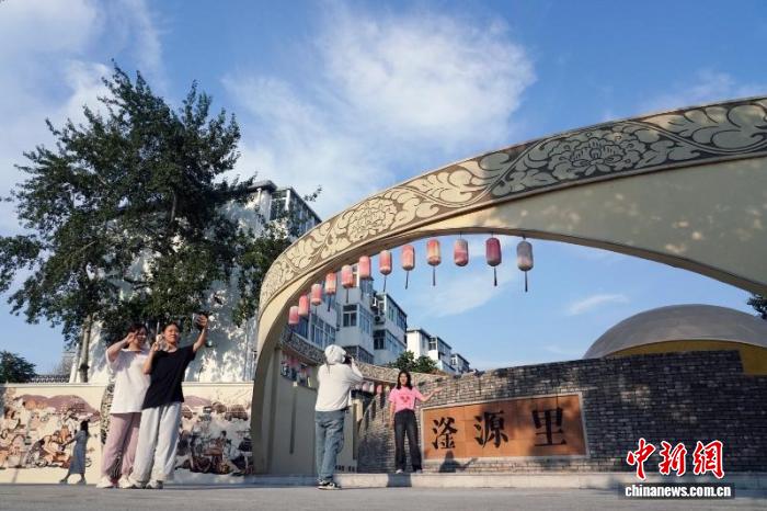 8月19日,游客在峰峰礦區(qū)滏源里磁州窯文化創(chuàng)意街區(qū)打卡留念?! ±顥?攝